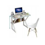 Birou cu raft depozitare, structura metalica robusta, dimensiuni 80 x 40, Alb – KESNUP