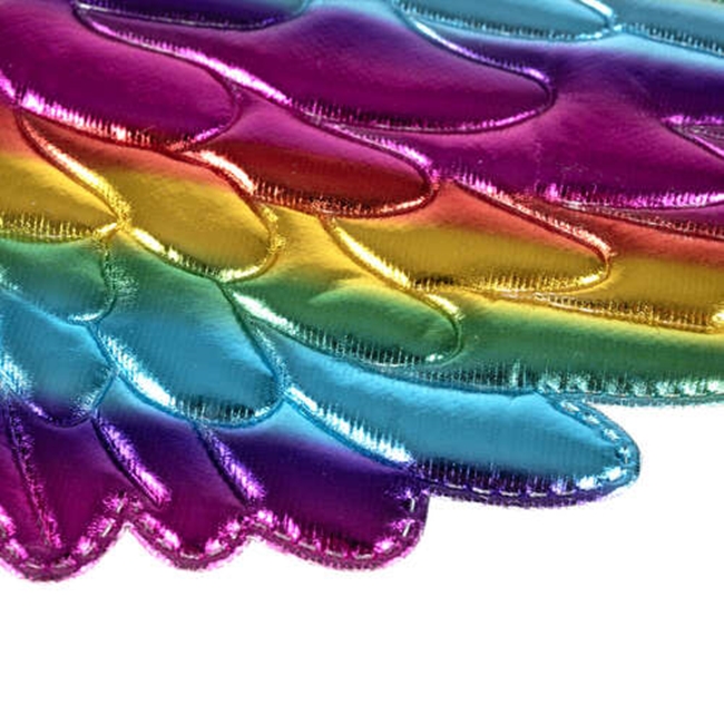 ARIPI – sunt un element esential al aspectului mistic al unui unicorn. Sunt realizate din material stralucitor, cu multe cusaturi imitand pene multistratificate de pe aripile de unicorn. Structura metalica si multicolora a materialului reflecta lumina fantastic si face ca aripile sa straluceasca, sporind efectul magic. Exista o banda elastica atasata la partea inferioara a aripilor, care le va mentine pe loc in timpul jocului cel mai expresiv.
