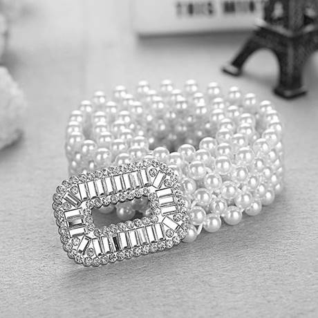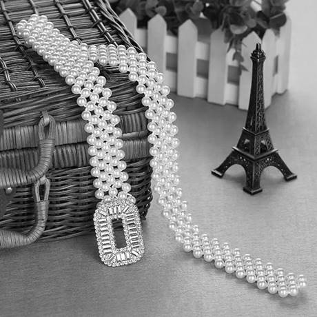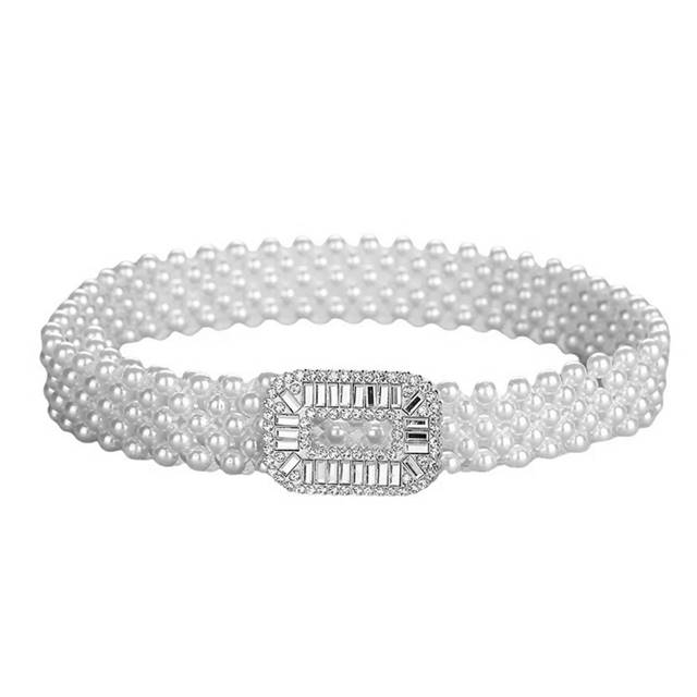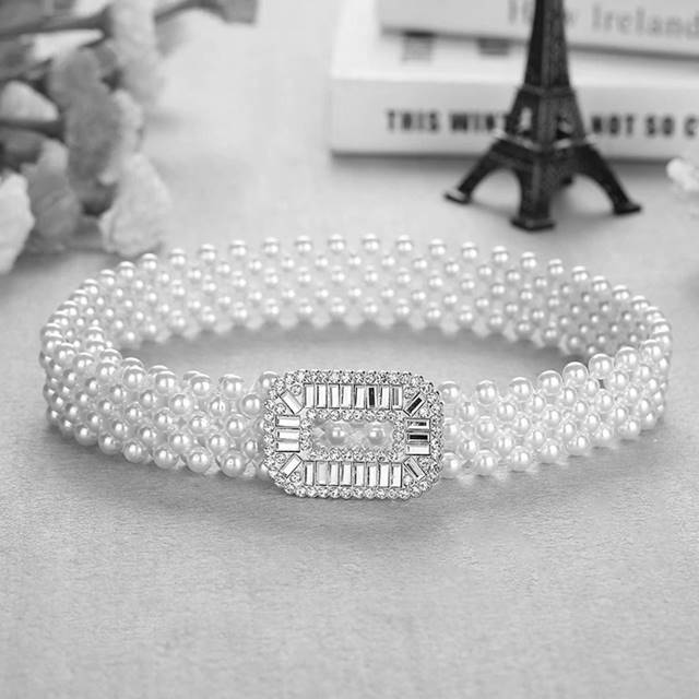 Curea din perle albe cu catarama cu strasuri Argintiu – CLASStitude