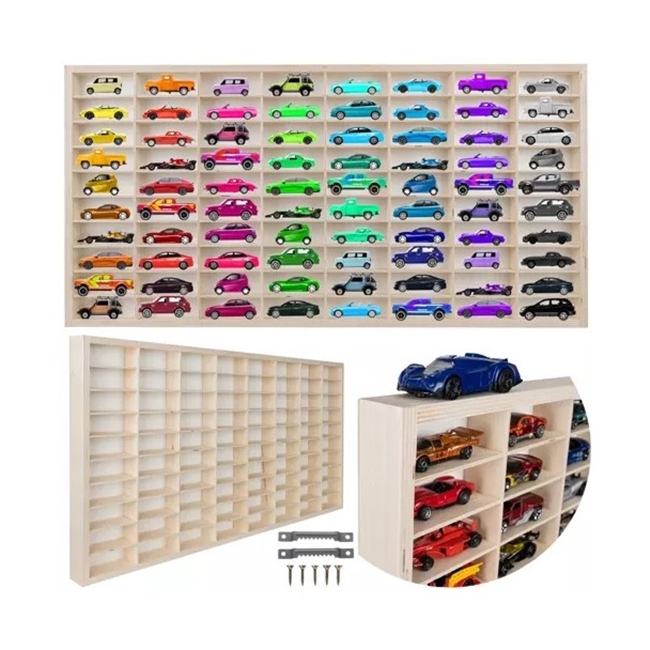 Cutie depozitare masinute din lemn, 80 compartimente,Bej deschis – KESNUP