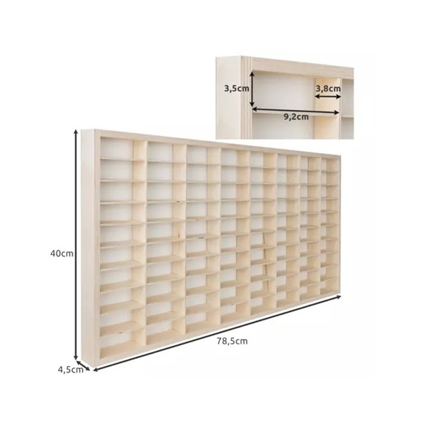 Cutie depozitare masinute din lemn KESNUP, 80 compartimente, montare usoara, 78.5 x 40 x 4.5, Bej deschis