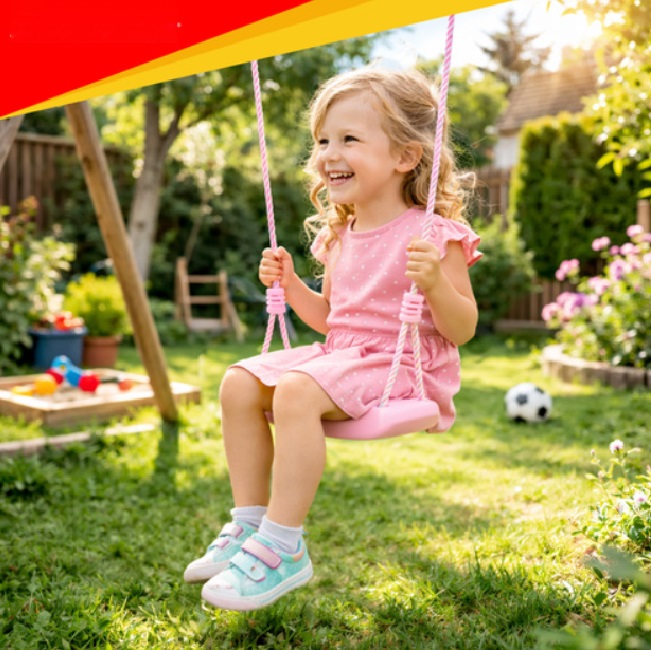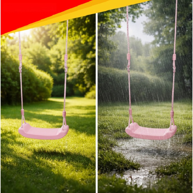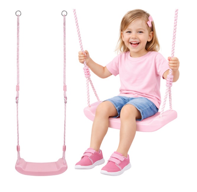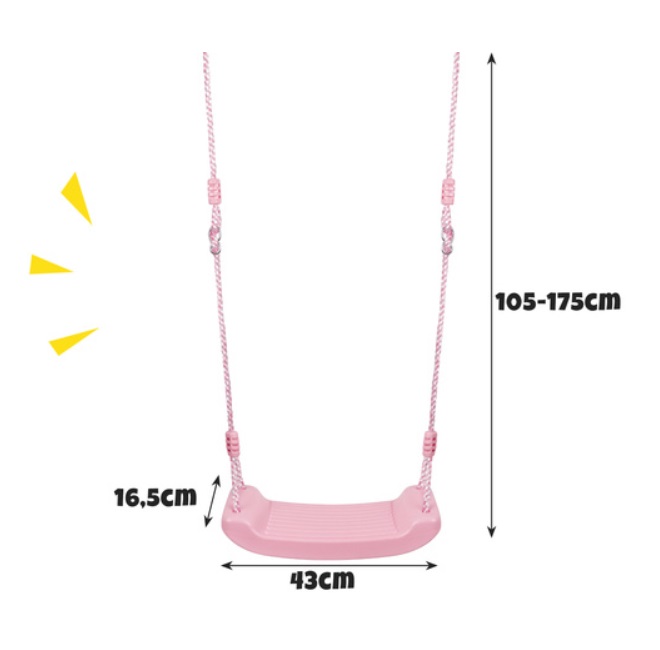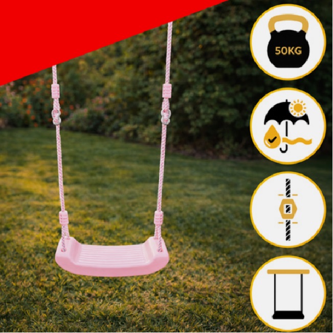 Construcție solidă – frânghii rezistente, elemente metalice de montare și un scaun ventilat garantează stabilitate și confort pentru copilul dumneavoastră