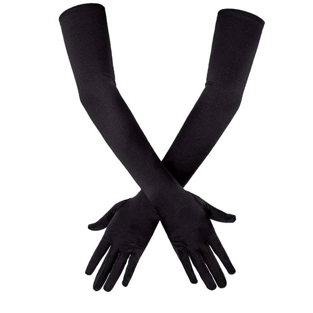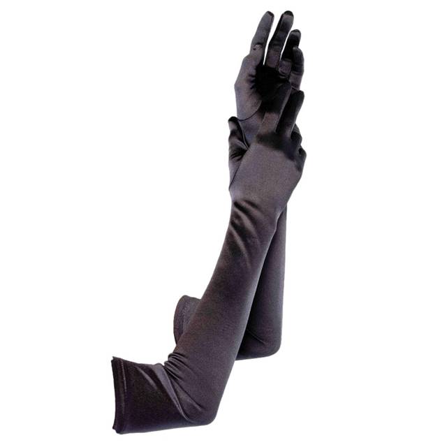 Manusi mireasa din satin lungi marime universala Negru – CLASStitude