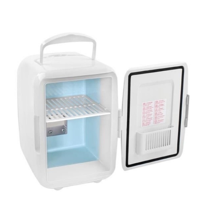 Poate conține doze sau sticle de băuturi cu o înălțime de până la 19 cm . Frigiderul este închis ermetic, iar un mâner cu zăvor protejează împotriva deschiderii accidentale. În interior există un raft detașabil și un buzunar pe ușă . Acest lucru permite depozitarea ușoară a diferitelor tipuri de produse. Frigiderul poate fi alimentat de la rețeaua electrică folosind un cablu sau de la priza brichetei mașinii . Ambele cabluri electrice sunt incluse în set . Alimentarea tradițională înseamnă că poate fi utilizat și la birou, în grădină sau în alt loc, în funcție de așteptările individuale. Cu toate acestea, în cazul utilizării frigiderului în afara clădirii, este foarte important să nu lăsați dispozitivul direct afară și să nu îl expuneți la lumina soarelui și la umiditate. La mutarea frigiderului, se ajută un mâner special, la îndemână, scos din carcasă . Dispozitivul poate fi folosit și ca încălzitor . Comutarea între funcții se face cu ajutorul comutatorului situat în spate, iar activarea unui anumit mod este semnalizată de o diodă aprinsă.