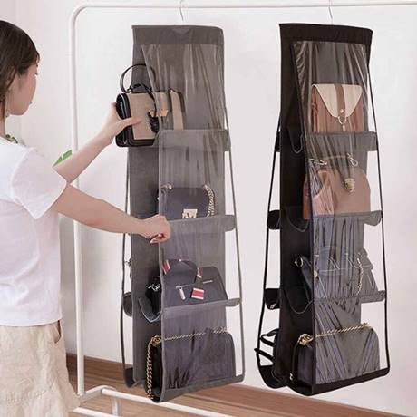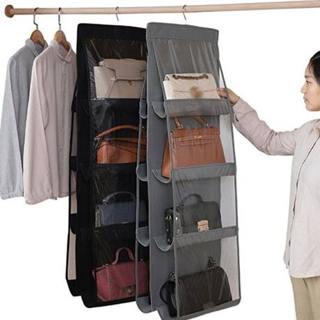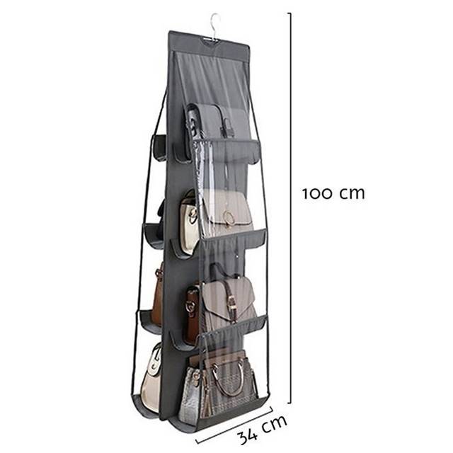 • Organizatorul este confectionat din material textil si fereste din polipropilena transparenta, care ajuta la alegerea gentii dorite.