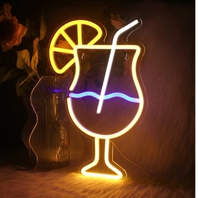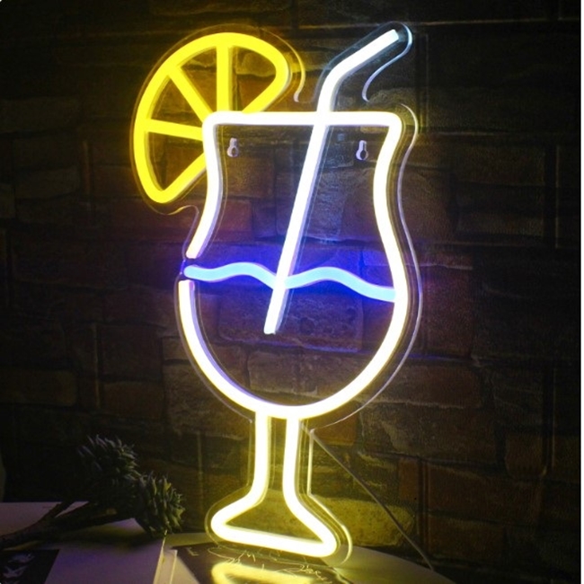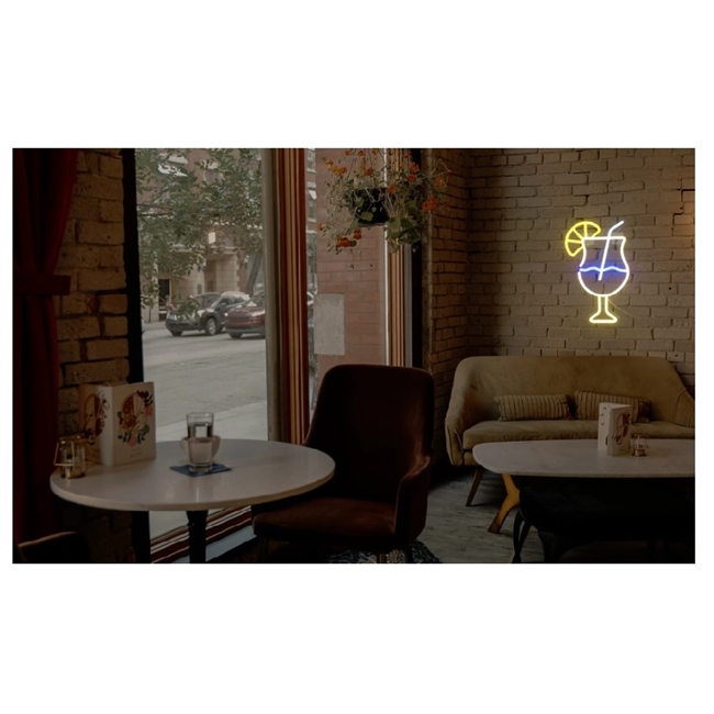 Semn LED Cocktail, decor bar, petreceri, Galben – CLASStitude