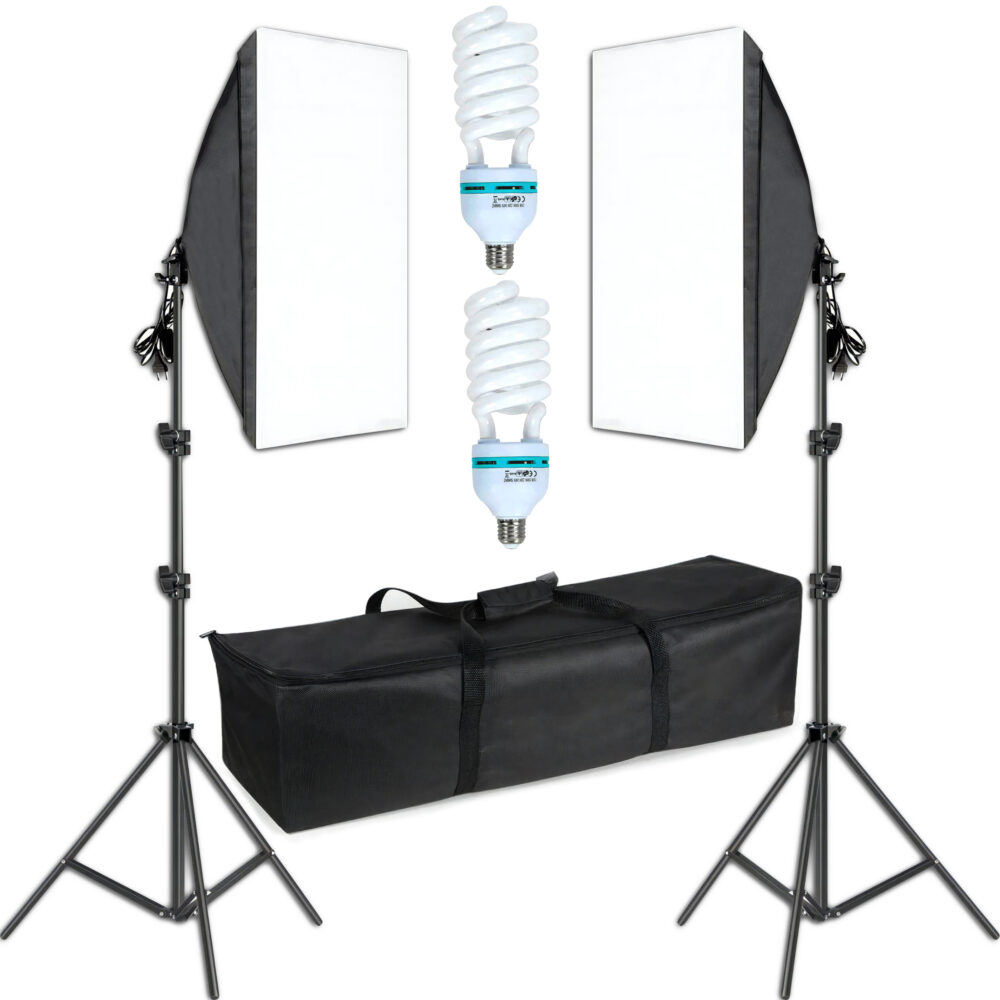 Set profesional de două lămpi de studio softbox – ideal atât pentru profesioniști, cât și pentru amatori. În plus, setul include două suporturi solide, becuri eficiente cu o putere de până la 150 W și o husă rezistentă!
