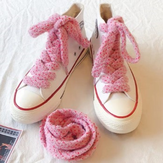 Set 2 sireturi plusate pufoase KESNUP, latime 1.2 cm, lungime 120 cm, pentru incaltaminte si imbracaminte sport, bocanci, adidasi, hanorace si pantaloni, Roz / Rosu
