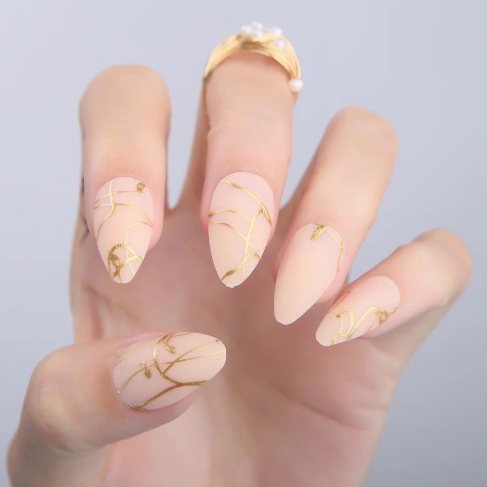 Set 24 unghii false press-on migdala Nude Gold – CLASStitude