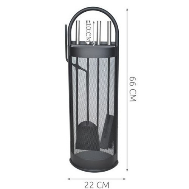 Un set de 5 piese de ustensile de șemineu cu un design modern. Durabil, fabricat din oțel și ușor de utilizat. Setul este usor de curatat datorita suportului echipat cu un suport, care va tine murdaria si cenusa de pe unelte, lasandu-ti casa curata. Capacul protejează accesoriile impotriva scanteilor de la șemineu.