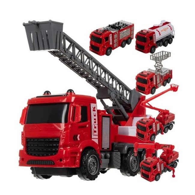 Camioane de pompieri de jucărie într-un set 6 în 1 pentru micii pasionați de salvare!
