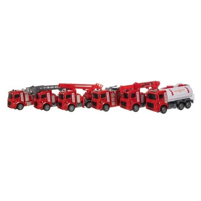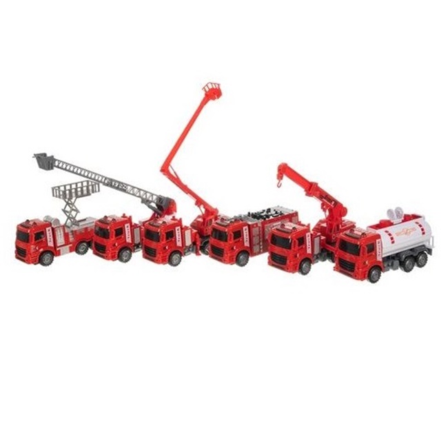 Set 6 camioane autoutilitare, model pompieri, 3+ ani, Rosu – KESNUP