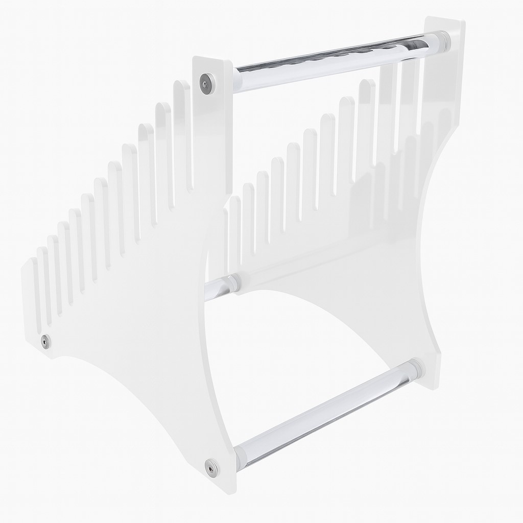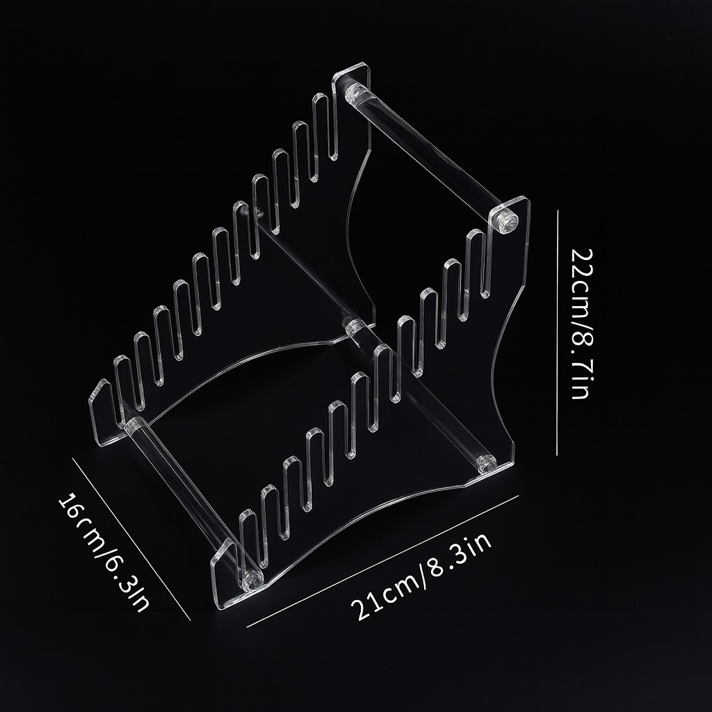 Fabricat din acril durabil si rezistent, suportul ofera stabilitate si vizibilitate excelenta, fiind ideal atat pentru utilizare acasa, cat si in studiouri, magazine sau spatii expozitionale. Structura include 12 sloturi bine definite, perfecte pentru organizarea discurilor de vinil pentru pick-up, facilitand accesul rapid la titlurile preferate.