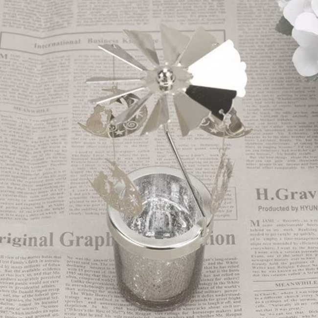 - Un suport de lumanare rotativ sub formă de ghiveci de flori.