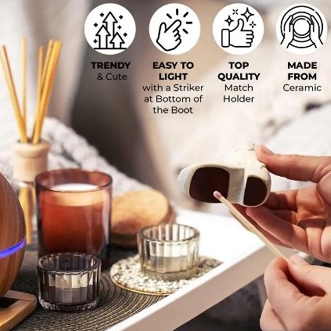 Acest suport din ceramică pentru cutii de chibrituri in formă de cizmă, in alb, este un plus unic și elegant pentru orice casă. Cu designul său drăguț, cu siguranță va fi un inceput de conversație printre oaspeții tăi.