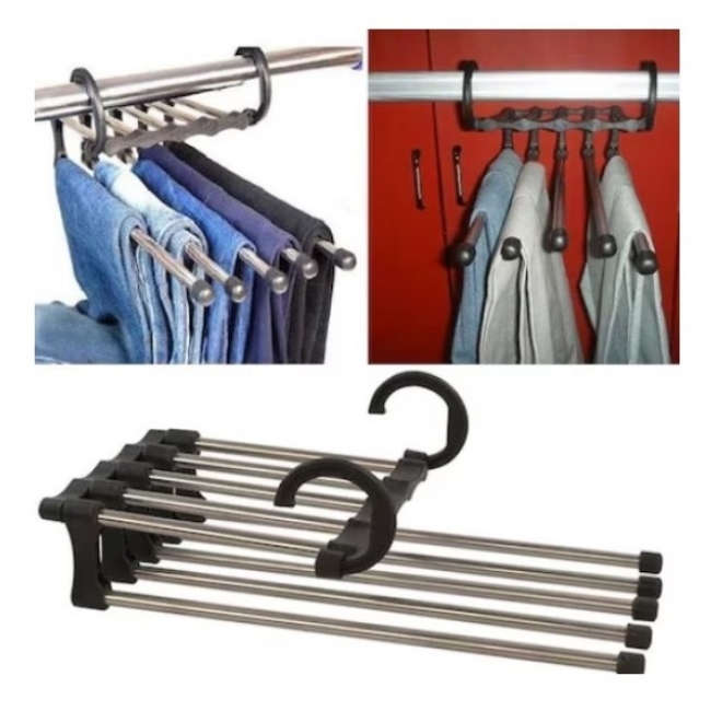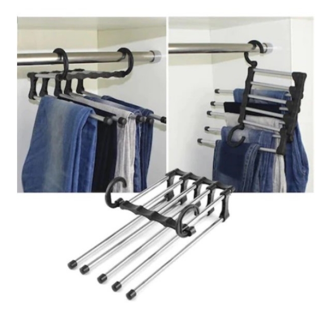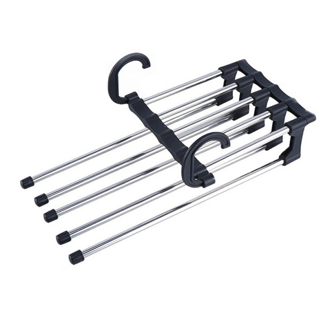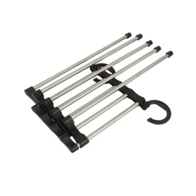 Un cuier pentru pantaloni (pană la 5 perechi), care poate fi agățat cu unul sau două carlige – ocupă foarte puțin spațiu valoros in dulap.