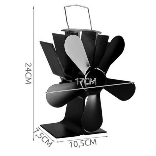 Ventilator mecanic pentru semineu. Creeaza o circulatie a aerului cald prin preluarea acestuia dintr-o soba incalzita sau semineu. Utilizează diferența de temperatură pentru a funcționa.